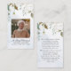This prayer card is double-sided, and can be personalised with your wording to honour your loved one at a funeral, memorial, or celebration of life service. The premium silk paper option provides lamination and is water-resistant and tear-resistant. The cards feature white floral greenery artwork.