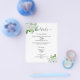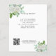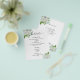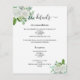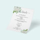 A modern, elegant wedding details/program/timeline. A white background, decorated with white watercolored florals and eucalyptus greenery. Personalise and add your names and wedding details. Black coloured letters.