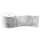 White floral ribbon. Close up image of hydrangea flower petals, in neutral tones of white and grey.