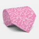 White floral lace on pink background tie