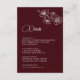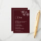 White floral line art cherry blossoms on burgundy background. Matching wedding invitation available.