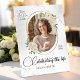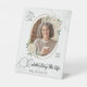 Create a heartfelt tribute with this elegant Celebration of Life pedestal sign featuring delicate white florals, soft marble texture, and a customisable photo. Perfect for displaying on a memory table, near floral arrangements, or at a funeral reception, this memorial photo sign offers a warm and graceful way to honour your loved one. Personalise with a name, dates, and photograph to make this funeral in sign a cherished keepsake that beautifully celebrates a life well lived. (2213)