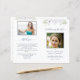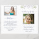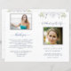 A tasteful funeral memorial or celebration of life program featuring beautiful watercolor white floral and greenery details. Please feel free to use our template text boxes to add any details or text you like, ours is simply an example. Opportunity to add two photographs, one on the front and a second photograph on the back along with a thank you message and any other text you prefer. NOTE: The program comes in a flat quality paper sheet that would require to be manually folded once you receive it. Coordinating Celebration of Life Invitation Card, guestbook, Welcome Photo sign, and thank you notes also available. Part of our "Delicate Funeral, Memorial Collection".