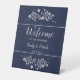 Stylish and trendy simple white floral wedding pedestal sign.