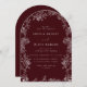 White Floral Vintage Deep Burgundy Wedding Invitation