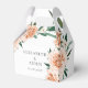 This romantic favour box features soft peach tones and detailed floral illustrations with lush greenery – perfect for summer weddings, rustic garden celebrations, or bridal showers personalised with your names and wedding date.