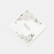Elegant white floral wedding napkins featuring the bride and groom's names and their wedding date.