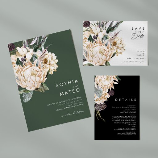 We designed these White Floral wedding napkins to complete your rustic dark tropical wedding. With its bohemian watercolor greenery to its modern boho winter flowers, including protea, dahlia, and dried lotus, the design is sure to set off your moody, minimalist green and white theme. Change the text and add a photo to make it your own. Also, make sure to look through the rest of the collection to find coordinating items that will bring your whole wedding together! https://www.zazzle.com/collections/white_floral_collection-119896729923706651
