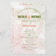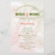 Ceremony program featuring tropical background in palm green and coral. Perfect for your beach or island wedding.