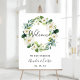 Floral Wedding Welcome Sign featuring a wreath of watercolor white flowers with green foliage. For more advanced customisation of this design, Please click the "Customise" button. Matching items are also available.