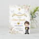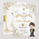 White Flower Boy First Holy Communion Gold Glitter Invitation