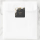 white flower gold leaves black square sticker