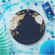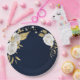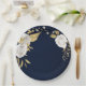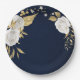 Beautiful white flowers & gold leaves navy blue paper plate