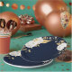 white flower gold leaves navy blue paper plate