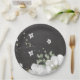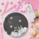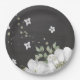 Beautiful white flowers & green leaves black paper plate