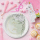 white flower green leaves gold wreath sage green paper plate