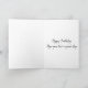 This card is great fun and good quality. I loved the humour inside and on the back. There is the opportunity to change the orientation of this card from landscape to portrait, which I did. It is relatively straightforward to amend the typeface to fit the new orientation. It was well packaged with no plastic. The printing on this card is excellent.