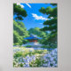 Experience the beauty of Japanese culture with this stunning digital artwork, featuring a traditional Japanese shrine surrounded by a field of delicate white flowers, with a lush forest in the background.