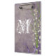 Personalised White Flower Floral Country grey rustic lace purple ribbon Monogram Initial Clip Board Personalised
