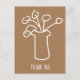 Modern cute design of white floral outline vase with flowers. Simple and elegant in modern minimalist style. Thank you greeting.