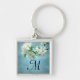 White Flower Deep Blue Sky Floral Country Monogram Initial Key Chain