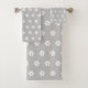 White Flower Pattern on Light Silver Grey Bath Towel Set