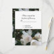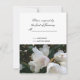 Pretty soft white flowers with dark green foliage on a white background accent this RSVP reply card.