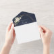 Invite friends and family in style and set the tone for your special day with this charming bridal shower invitation. Design features white watercolor flowers, greenery and gold frame on navy blue background.