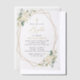 Invite friends and family in style and set the tone for your special day with this elegant baptism invitation. Design features white watercolor flowers, greenery and gold frame.