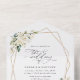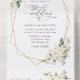 Invite friends and family in style and set the tone for your special day with this charming wedding invitation. Design features white watercolor flowers, greenery and gold frame on white background.