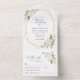 White Flowers, Cream Flowers, Greenery, Wedding All In One Invitation