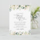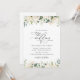 Invite friends and family in style and set the tone for your special day with this charming wedding invitation. Design features white watercolor flowers and greenery on white background.