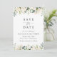 Invite friends and family in style and set the tone for your special day with this charming save the date card. Design features white watercolor flowers and greenery on white background.
