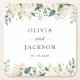 White Flowers, Cream Flowers, Greenery, Wedding Square Paper Coaster