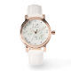 Carry a touch of romance wherever you go with this elegant, personalized watch. Featuring a delicate arrangement of white flowers and sage green leaves in a watercolor style, this botanical themed design perfectly captures a soft, modern romantic aesthetic. The elegant floral face is complemented with deep blue typography, allowing you to personalize the watch face as a wedding or anniversary keepsake with the couple's initials and date; simply click "Personalize" to update the text. Ideal as an accessory for the bride, or a heartfelt, matching gift for your bridesmaids or Maid of Honor.