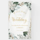 Elegant white flowers, eucalyptus gold wedding banner. Personalised in minutes. Add your data, and you can select the font, colour, size and position individually by clicking "Personalise more".