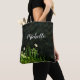 White flowers green name script tote bag