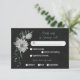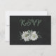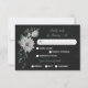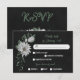Unique response card RSVP featuring romantic white flowers and green leaves on black background with meal choice option.