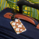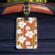 White flowers on a striped background luggage tag
