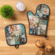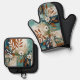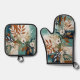 White flowers on colourful abstract background II Oven Mitt & Pot Holder Set