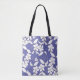 White Flowers on Periwinkle Tote Bag