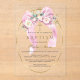 White Flowers Pink Bow Girl Baptism Transparent Acrylic Invitations