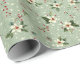 White Flowers, Red Berries: Green Foliage Wrapping Paper
