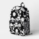 White Flowers with Pearls on Black Printed Backpack