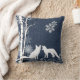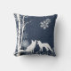 If you love birch trees, foxes, nature, and wildlife you'll love this pretty pillow in black, blue, and white featuring white silhouette foxes on a background of dark blue winter sky with big and small snowflakes, and white birch trees.