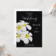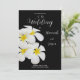 A soft and delicate floral design with white Hawaiian Frangipani or Plumeria flowers on a black background. Elegant script type that accents the elegant white and yellow flowers. A perfect invitation package set for the beach wedding, Hawaiian wedding, tropical island destination wedding and more.