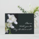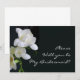 A tasteful bridesmaid request card with white freesias on a black background with white lettering. The lettering is fully customisable and the reverse of the card is left blank for you to add your message and details.