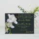 A very stylish wedding invitation with with creamy white freesias against a black background. The details of the wedding are in cream lettering, which you can customise fully, changing the style and colour if you wish.