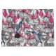 Vector seamless pattern with hand drawn fuchsia flowers and hummingbirds