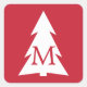 White Geometric Tree on Red with Custom Monogram Square Sticker